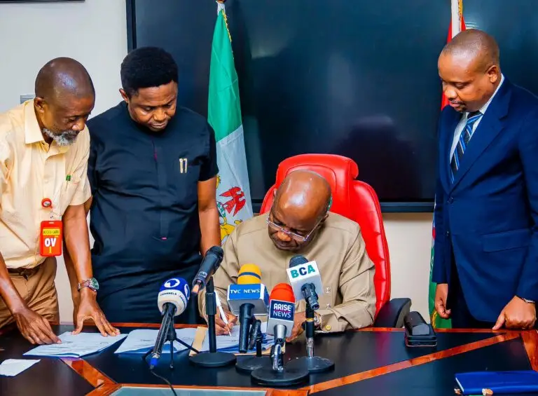 Gov. Alex Otti of Abia on Thursday signed the Abia State of Nigeria Governors and Deputy Governors Pension Repeal bill of 2024 into law.