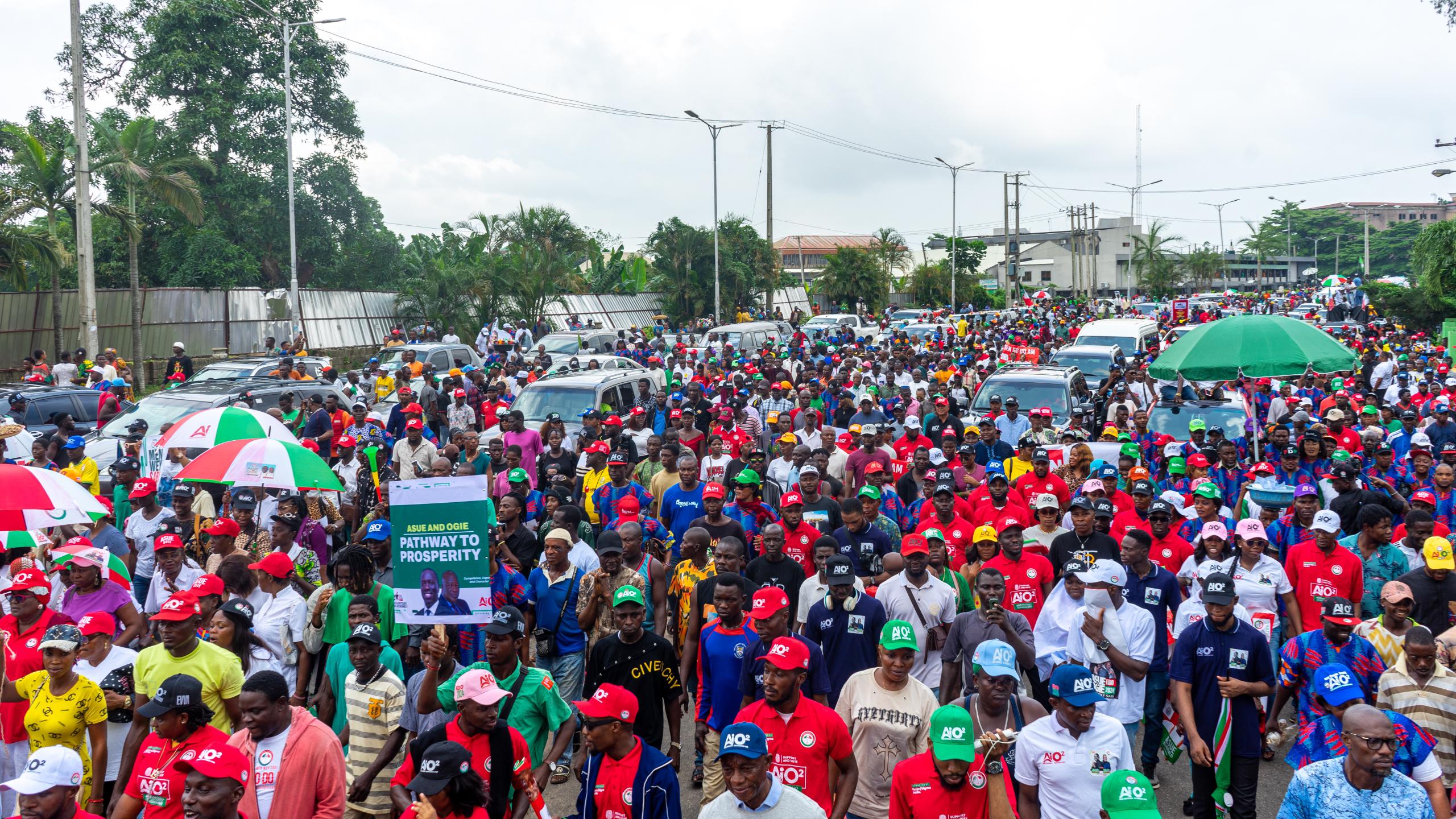 Ring Road, was filled to overflowing with supporters of Asue/Ogie candidacy spilling to the adjourning streets.