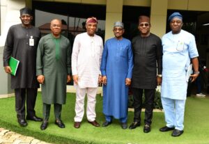FCCPC Executive Vice Chairman/CEO, Mr. Tunji Bello (left), NMDPRA Chief Executive, Mr. Farouk Ahmed (centre), FCCPC Executive Commissioner (Operations), Mr. Louis Odion (right), NMDPRA Mr. Ogbugo Ukoha (Executive Director, Distribution Systems, Storage & Retailing Infrastructure) during a strategic meeting at the FCCPC over the weekend to strengthen consumer protection and competition collaboration in the petroleum sector.