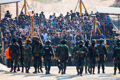 On Wednesday, a large group of trafficking victims who were sent back from Myanmar’s Myawaddy area were seen crossing the Moei River to Thailand, where they were directed onto Thai military vehicles as soldiers looked on.