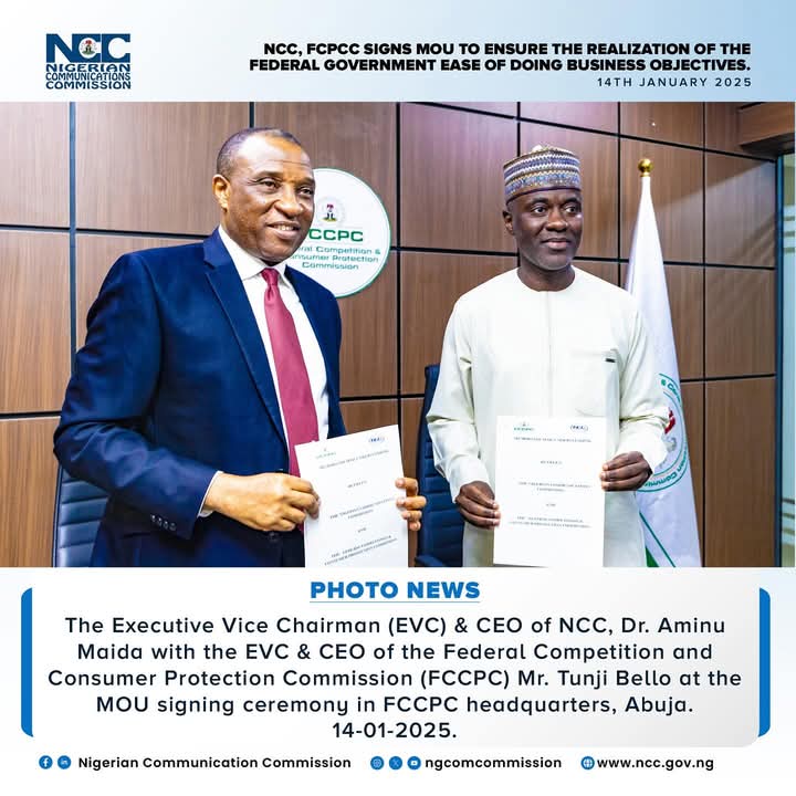The Nigerian Communications Commission (NCC) and the Federal Competition and Consumer Protection Commission (FCCPC) have signed an agreement to eliminate regulatory gaps in the telecommunications industry.