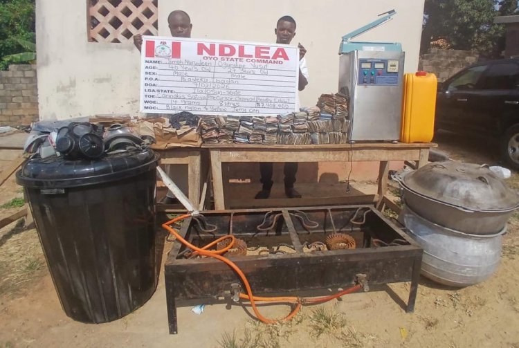 A drug kingpin Jimoh Nurudeen, 40, who owns a facility where he produces Colorado, a synthetic cannabis, was on Saturday 7th February arrested at Badeku area of Ibadan by NDLEA operatives along with his accomplice Ogundipe Yusuf, 27.