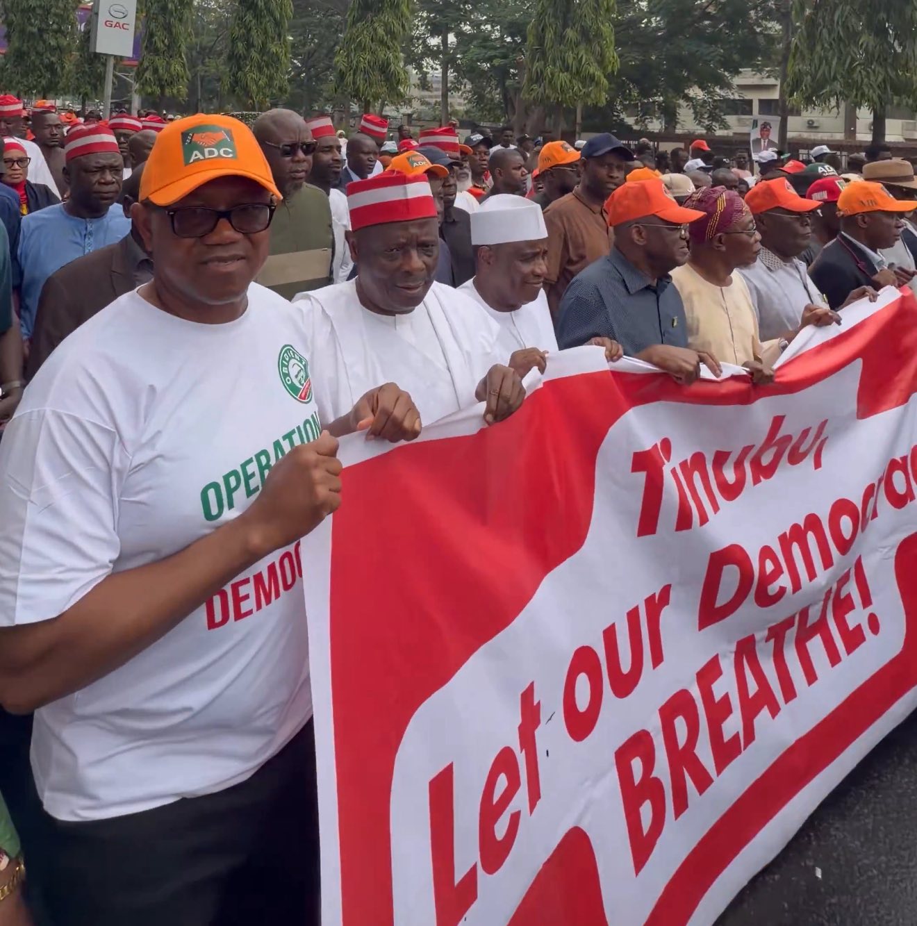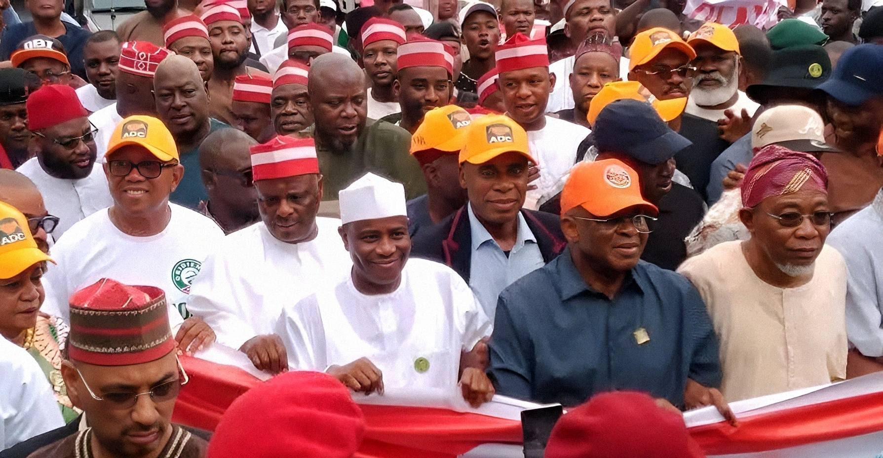Peter Obi, Kwankwaso, other ADC chieftains lead Save Democracy protest in Abuja