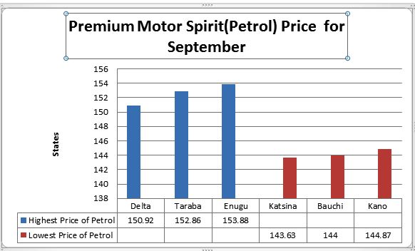 It also named states with the lowest average price of petrol to include Kano (N144.87), Katsina N143.63) and Bauchi (N144.00).
