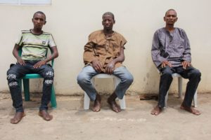 The suspects: Tukur Usman ‘m’ aged 37, father of 7, Shehu Bello ‘m’ aged 40, father of 5 and Mustapha Mohammed ‘m’ aged 30, father of 1, all of Igabi LGA of Kaduna State were arrested after several months of intensive and extensive intelligence-led operations by crack detectives of the Intelligence Response Team (IRT).