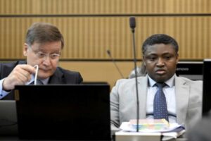 Simon Ekpa in court with his lawyer Kaarle Gummerus PHOTO by Helsink Times