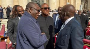 President Bola Tinubu, Mr Peter Obi, the Labour Party Presidential candidate in the 2023 election, and former Ekiti governor Kayode Fayemi met at Pope Leo XIV’s installation mass on Sunday in Rome.