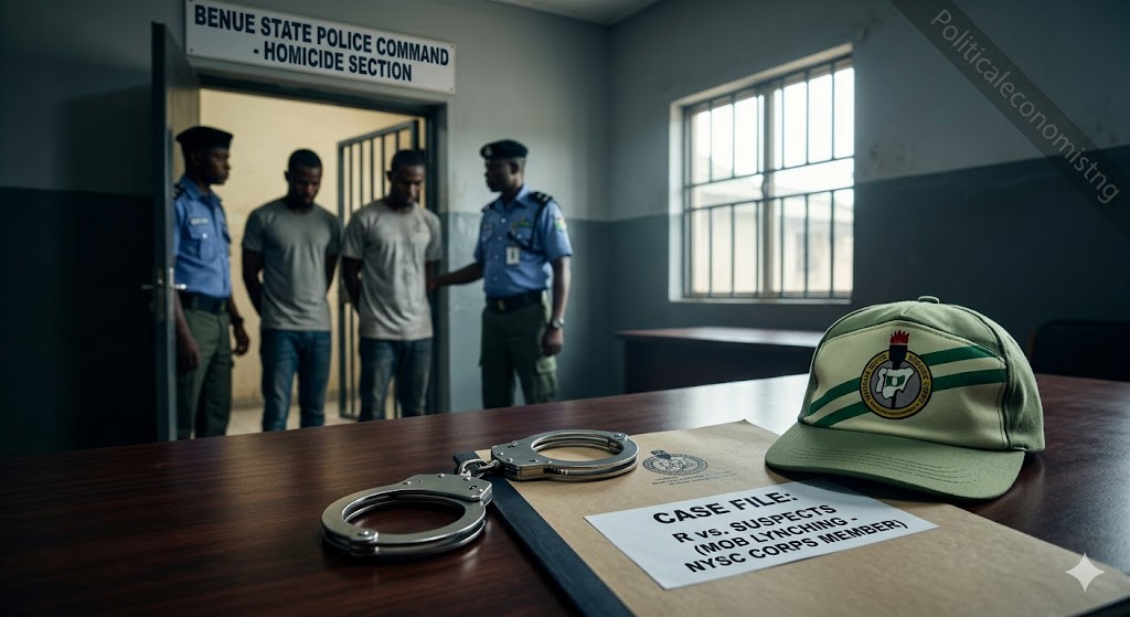 The Benue State Police Command has confirmed the arrest of two suspects following the brutal mob killing of a National Youth Service Corps (NYSC) member, Mr. Benjamin Msughaondo, who was lynched based on a false accusation.
