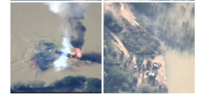 At the river bank, the terrorists and their motorcycles boarded a large motor-powered canoe in an attempt to cross and link up with other terrorists across the river.